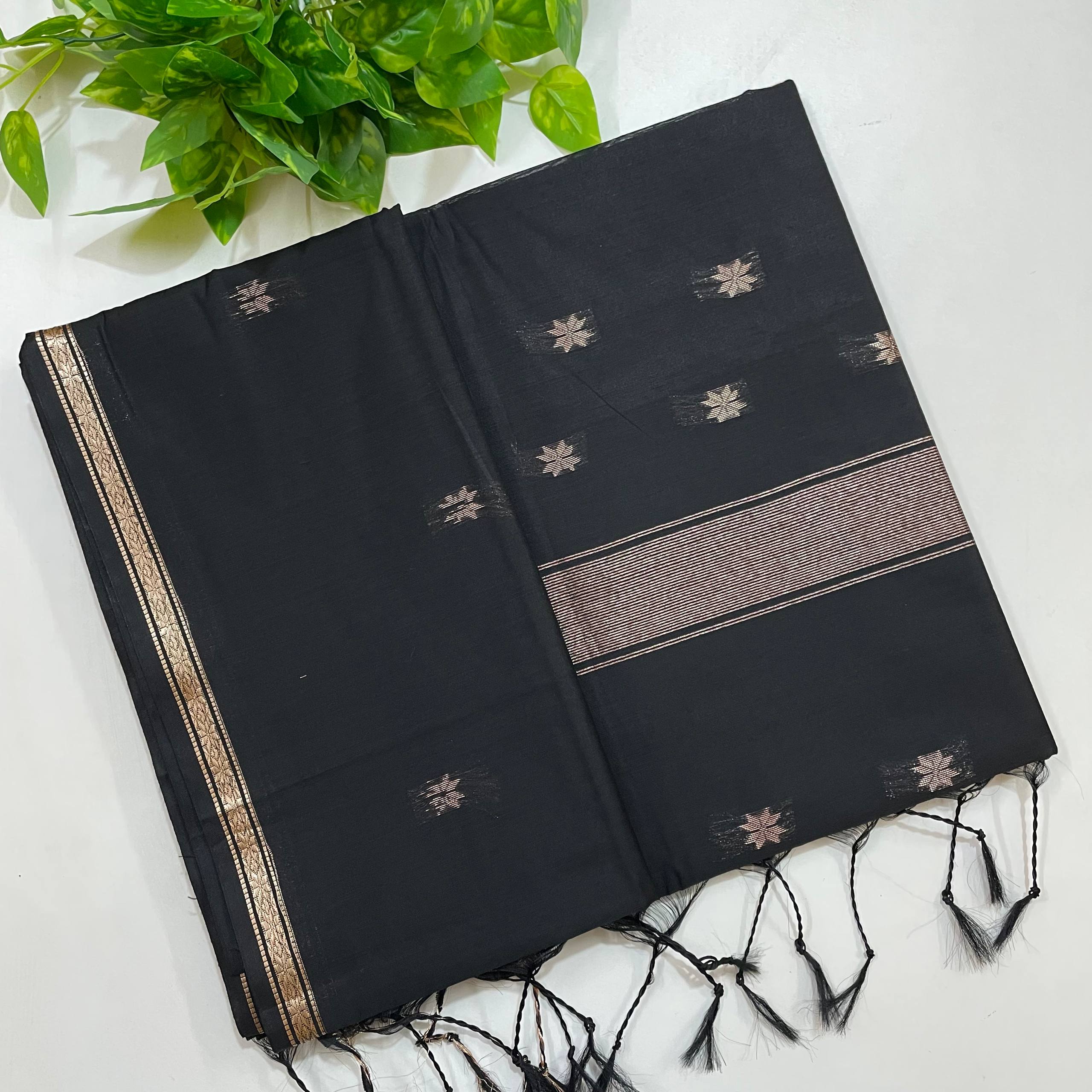Coal Black Maheshwari Cotton Silk Saree